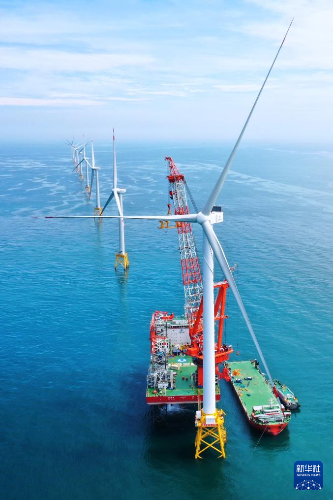 这是在三峡集团福建海上风电场成功并网发电的16兆瓦超大容量海上风电机组(无人机照片,7月19日摄)。新华社发(三峡集团福建公司供图)
