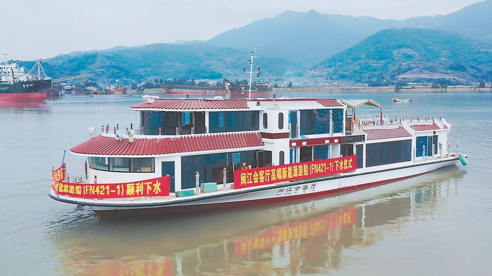 16日,由福宁船舶重工有限公司建造的高端新能源游船“闽江会客厅”在福安顺利下水(如图)。据悉,该船舶是首艘福建造高端新能源游船。
