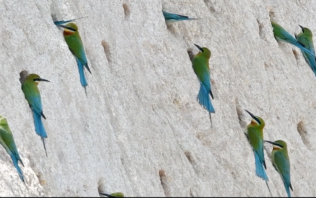 栗喉蜂虎,国家二级保护动物,被称为中国最美丽的鸟类之一。作为夏候鸟,每年4月份左右,栗喉蜂虎会“组团”来到厦门五缘湾栗喉蜂虎市级自然保护区筑巢繁衍。