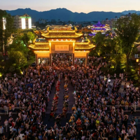 8月2日晚,连城非遗奇妙夜活动开启,现场人山人海。新华网发(主办方供图)