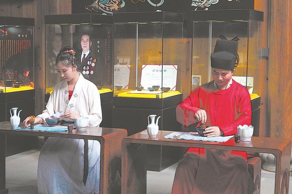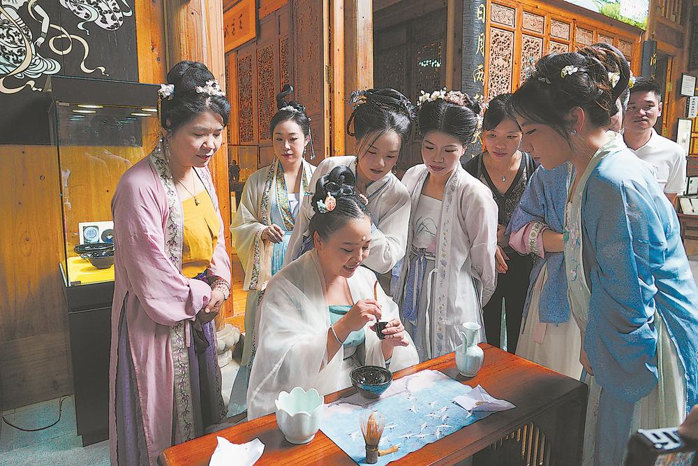 点茶是两宋饮茶的主流形式,是中国古代茶艺的代表之一。比赛现场,选手身穿宋制汉服行时揖礼,他们姿态优雅,从润筅、温盏、投茶粉到注水冲点、茶筅击拂、茶膏画字,动作都十分娴熟。比赛现场茶香四溢,大批爱茶人士一边聆听琴音,一边感受宋式点茶的魅力。(记者 许可欣 通讯员 蔡沁妍 摄影报道)