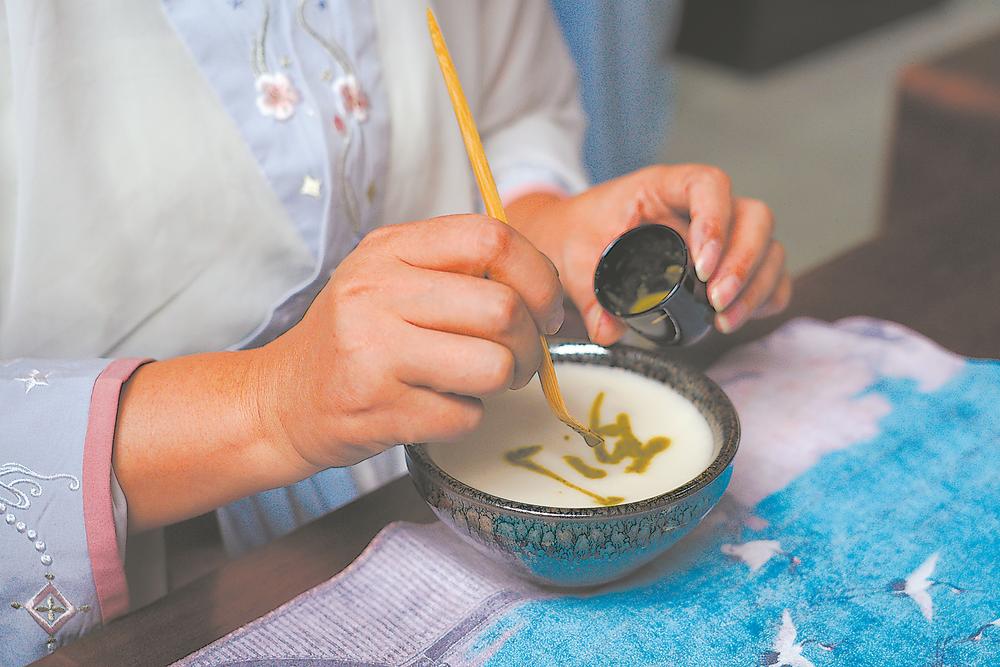 茶膏画字。