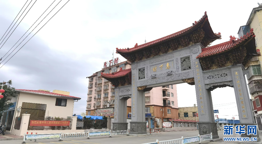 惠下村村口的大门,从筹备到建设,都有村民的参与。新华网 刘丰 摄