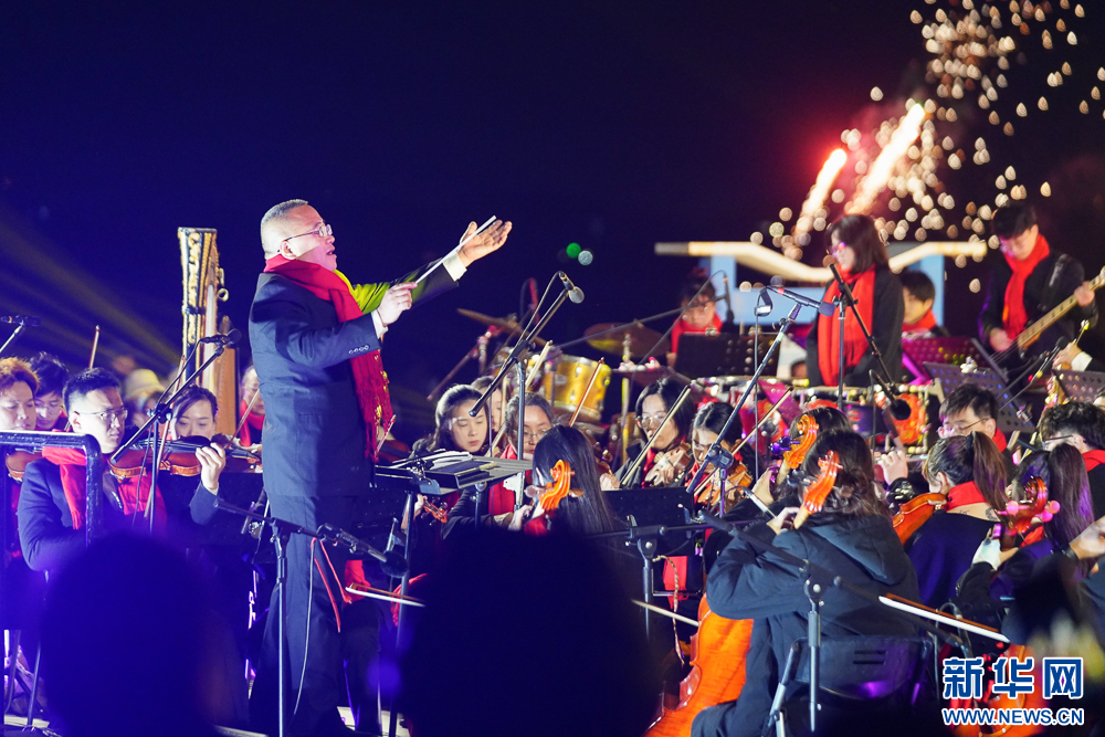 这是当天清晨6时许拍摄到的新年交响音乐会现场(无人机照片)。