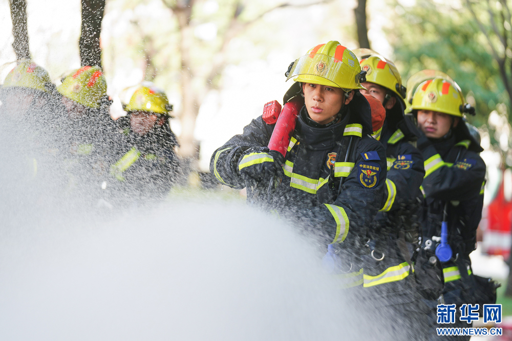 1月30日,漳州特勤消防救援大队一站,“00后”消防员在进行灭火操法训练。