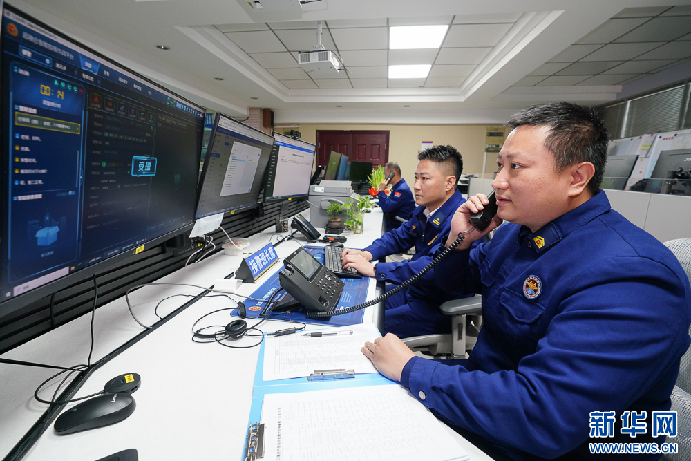 1月30日,漳州市消防救援支队指挥中心,值班人员在接处警,实时调度、指挥一线灭火救援工作。新华网 肖和勇 摄