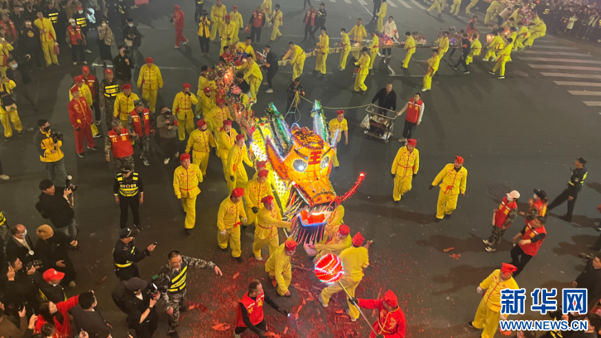新华网福州2月13日电(刘默涵)2月12日晚,福建省大田县举办2025年元宵节城区迎板灯龙民俗文化活动,吸引了城乡各地群众和外地游客数万人到现场观看,场面浩大,气氛热烈。