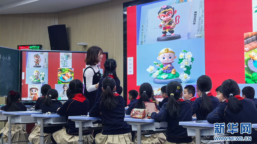 福州市温泉小学老师连秋婷结合“福”文化,指导学生借助AI工具链设计《西游记》人物数字形象。新华网发(主办方供图)