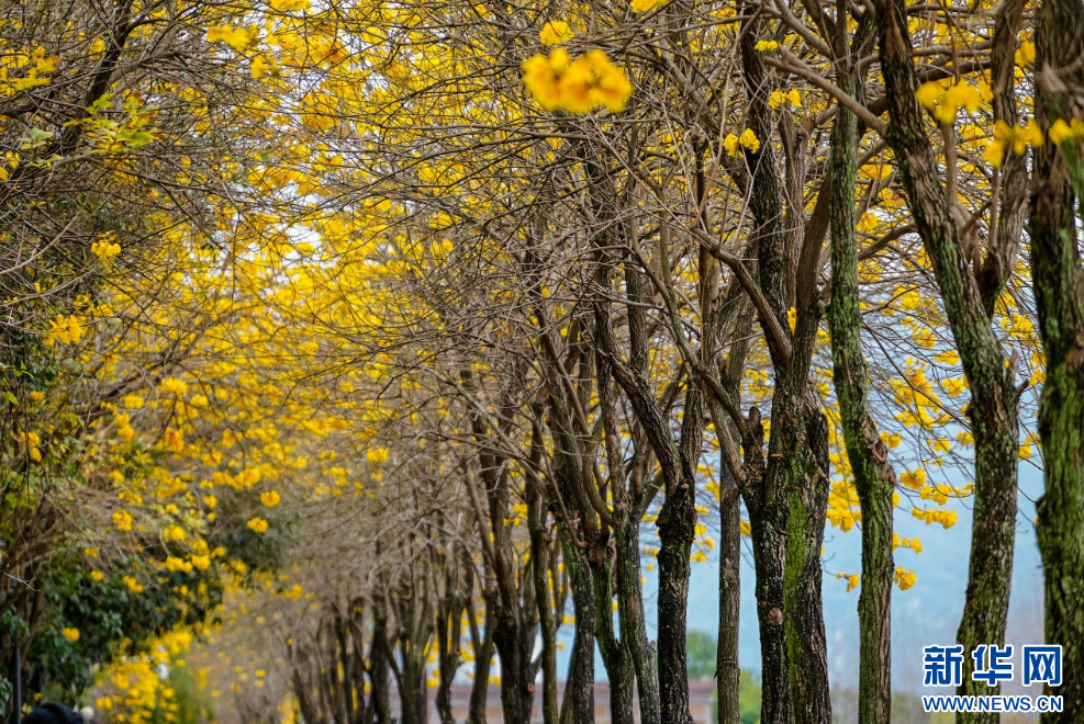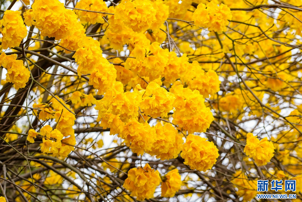 图为盛开的黄花风铃木。新华网 蒋巧玲 摄