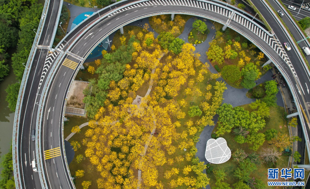 藏在城市里的黄花风铃木公园。新华网 蒋巧玲 摄
