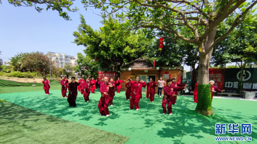 秀屿区武术协会副会长林金木带着群众在太极广场练太极。新华网发(主办方供图)