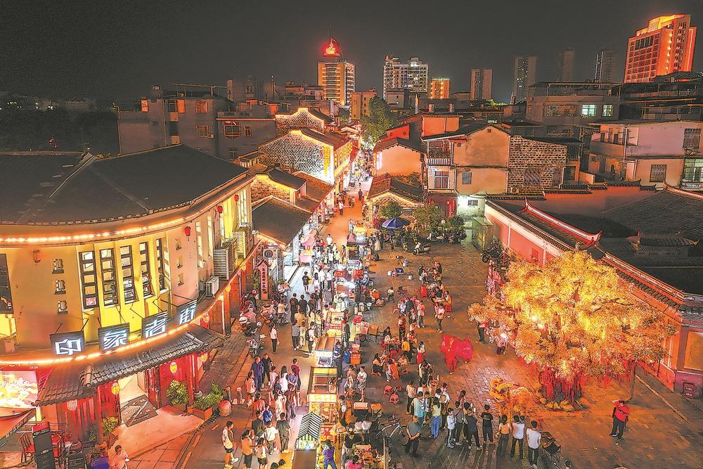 “一条瓦子街,半部上杭史。”位于汀江北岸的瓦子街总长1135米,是省级历史文化街区,这里不仅有流芳牌坊、太忠庙、文庙、丘氏总祠、丁状元旧居等古迹,还引进了茶馆、地方美食、休闲餐饮、糕点烘焙、陶艺研学、文化创意等业态,逐步形成集“游、娱、吃、购、商、服、学”于一体的夜经济商圈。