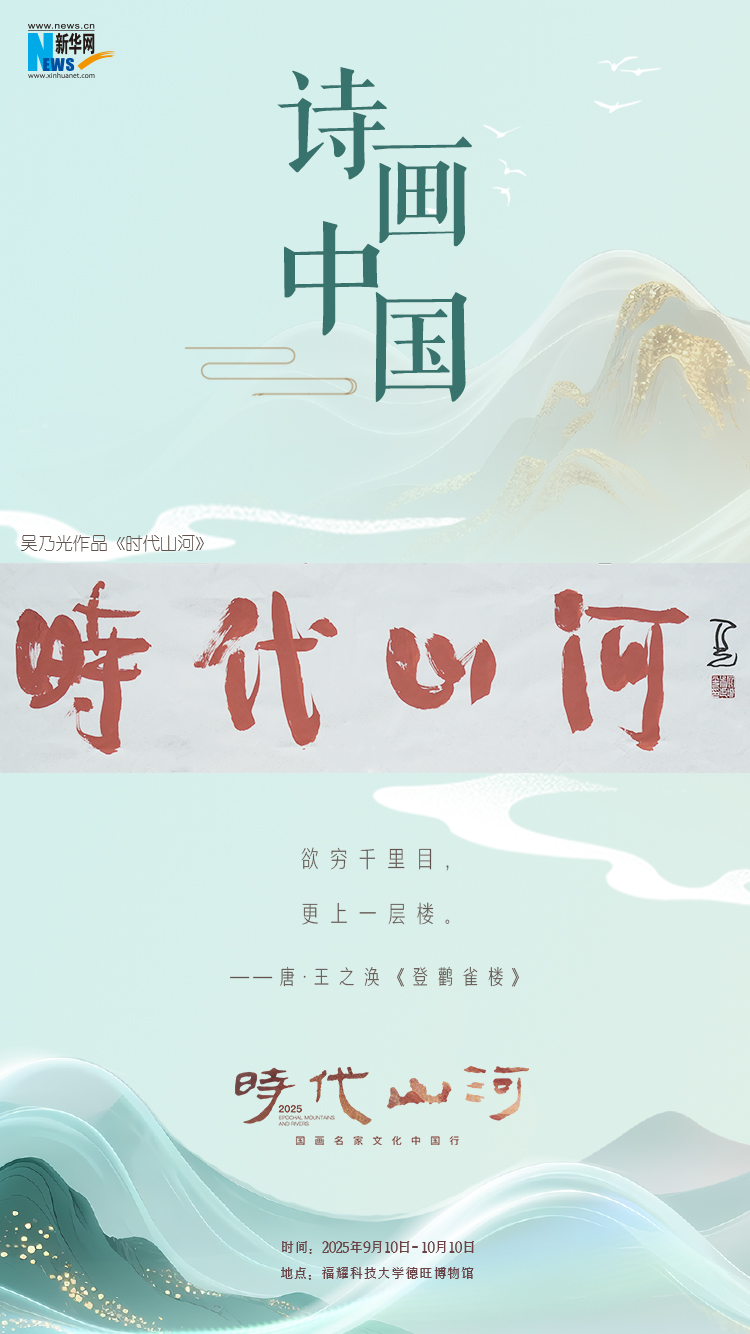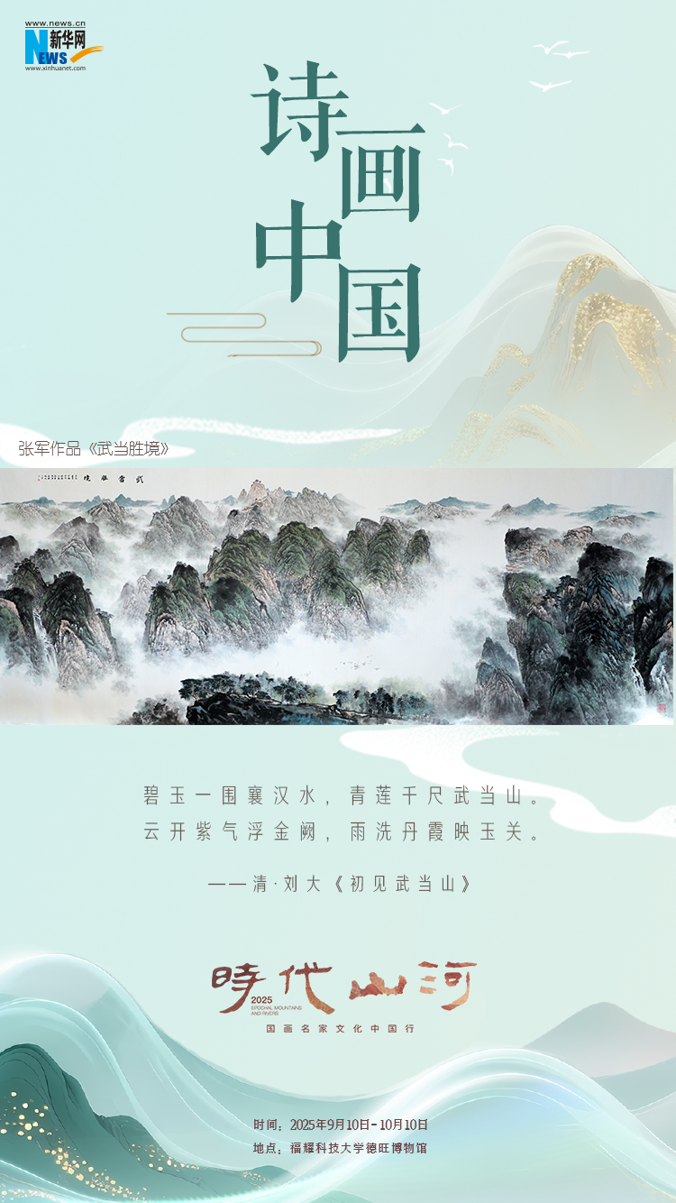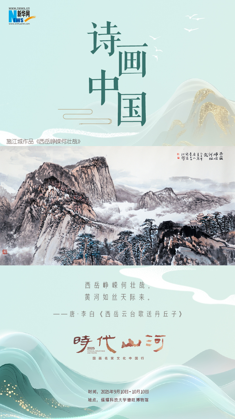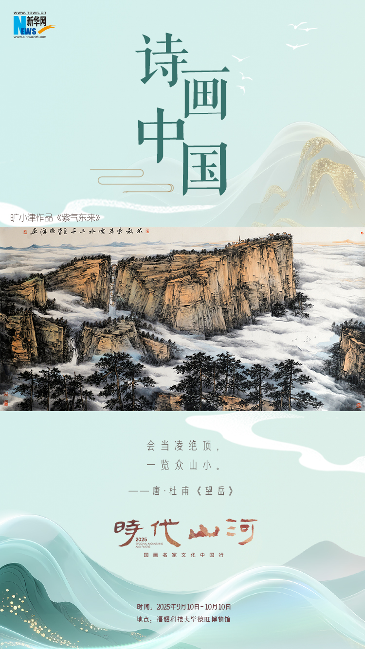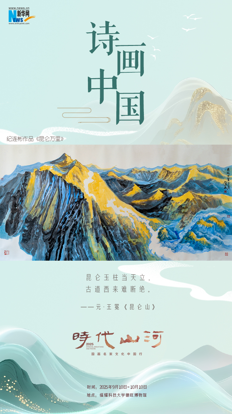 “建设文化强国 共绘时代新篇——国画名家文化中国行”发布会暨“时代山河”首期画展将于9月10日在福耀科技大学拉开帷幕。十位国内知名艺术家受邀以十大山脉为题,以笔墨诠释中华文明的山水密码。系列海报精选展出作品,将古典诗词融于写意水墨之间,一起来先睹为快!(陈丹)