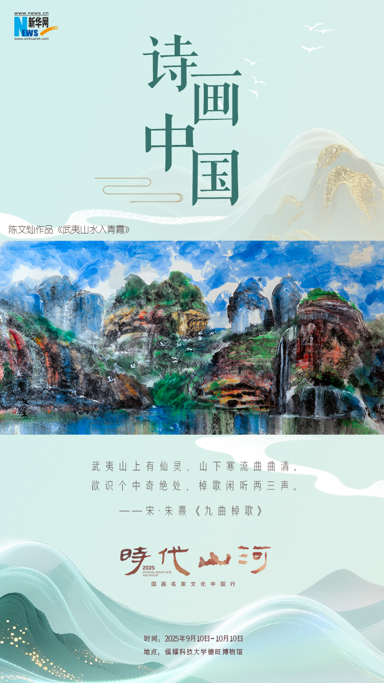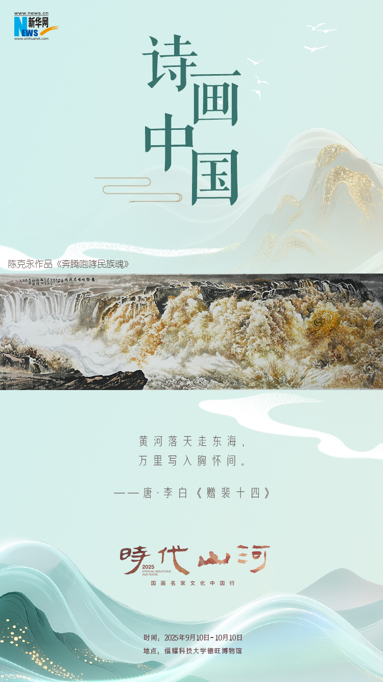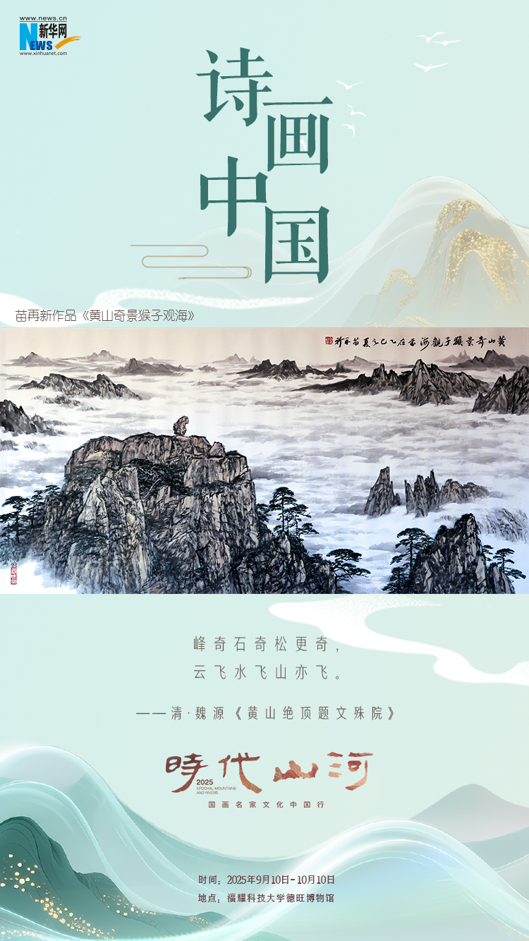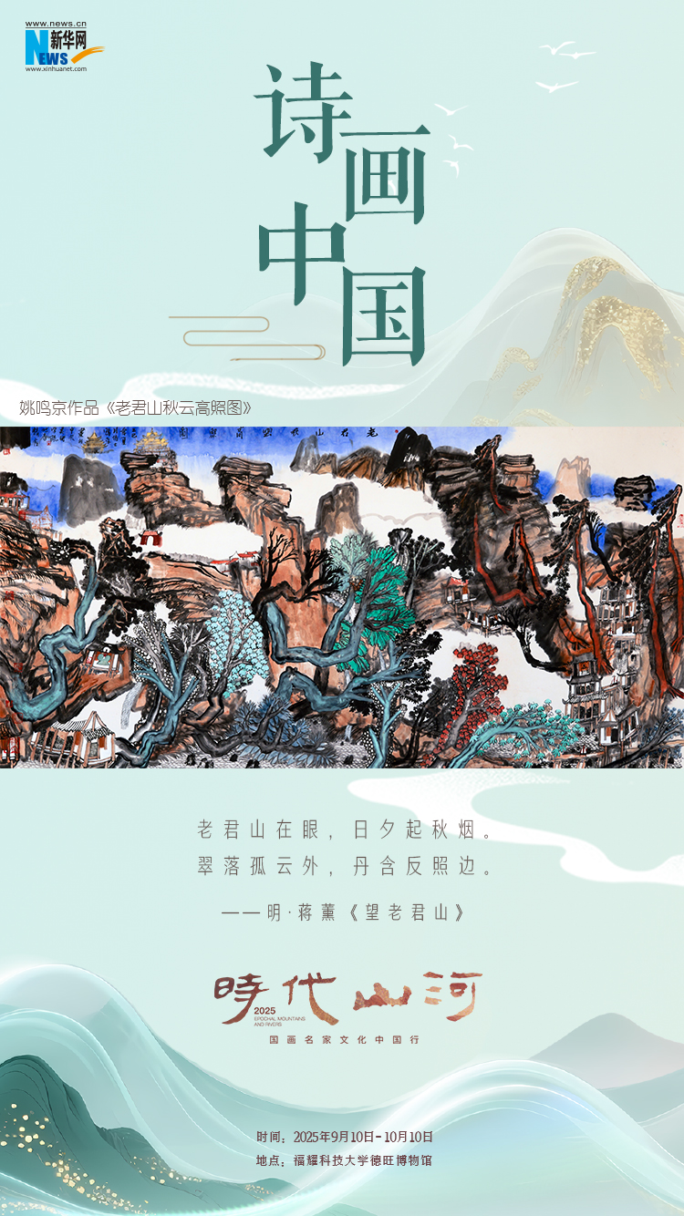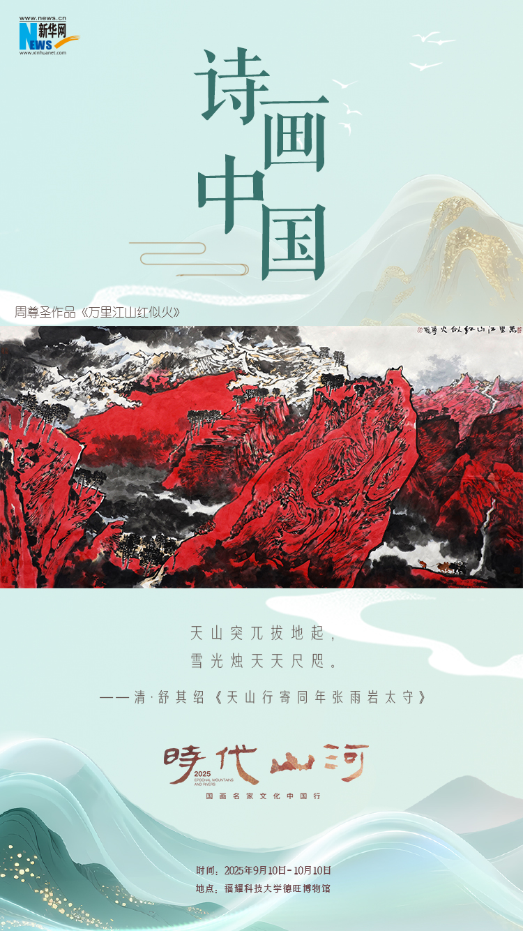 “建设文化强国 共绘时代新篇——国画名家文化中国行”发布会暨“时代山河”首期画展将于9月10日在福耀科技大学拉开帷幕。十位国内知名艺术家受邀以十大山脉为题,以笔墨诠释中华文明的山水密码。系列海报精选展出作品,将古典诗词融于写意水墨之间,一起来先睹为快!(陈丹)