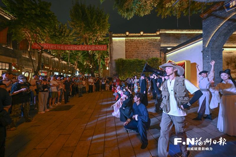 作为电影节重要活动之一,“电影之城”嘉年华暨惠民消费季在上下杭历史文化街区率先启动。百年古厝与电影元素巧妙融合,街区变身“移动片场”,吸引市民游客驻足打卡。一名带着孩子前来参观的市民说:“仿佛走进了电影,一边逛古街一边看表演,非常新奇。”