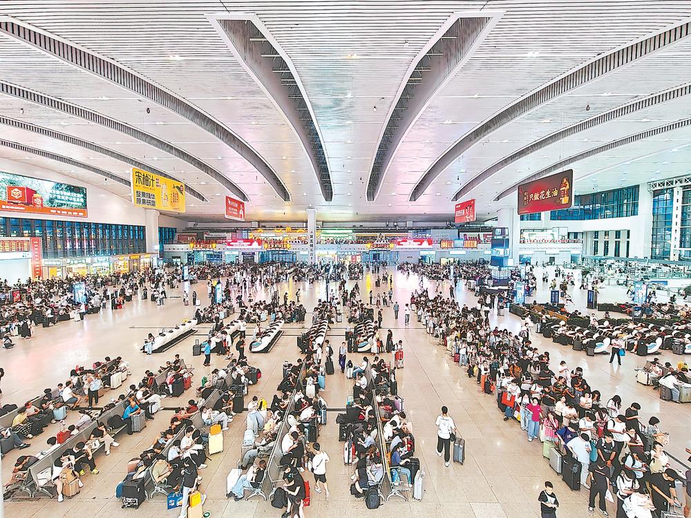1日,旅客在福州火车站候车大厅有序排队候车。赖海燕 摄