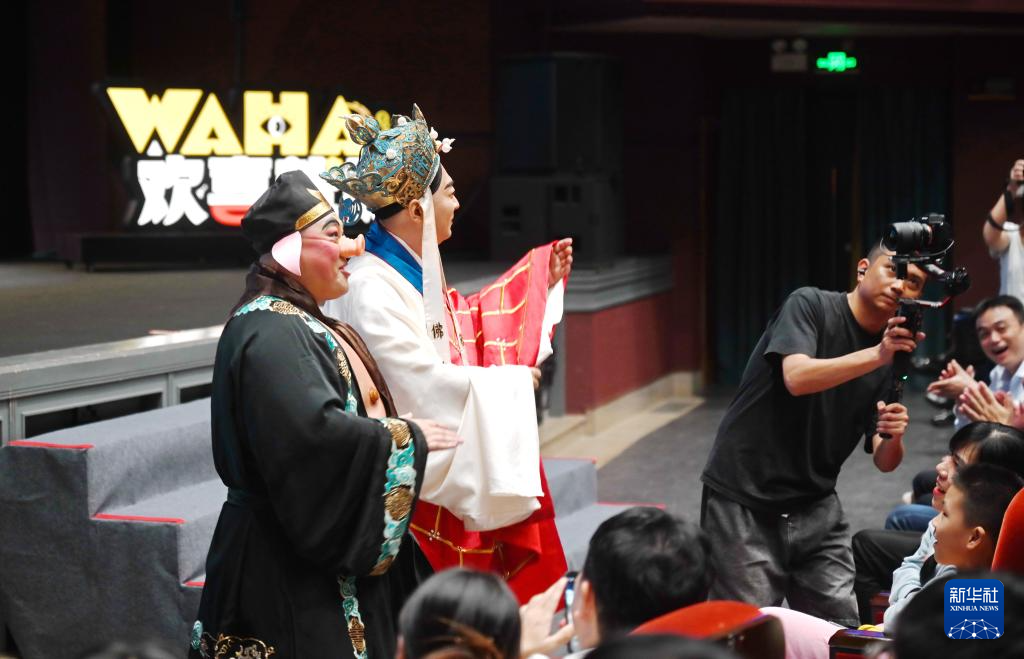 10月25日,福建京剧院演员表演素描喜剧《真假美猴王》。