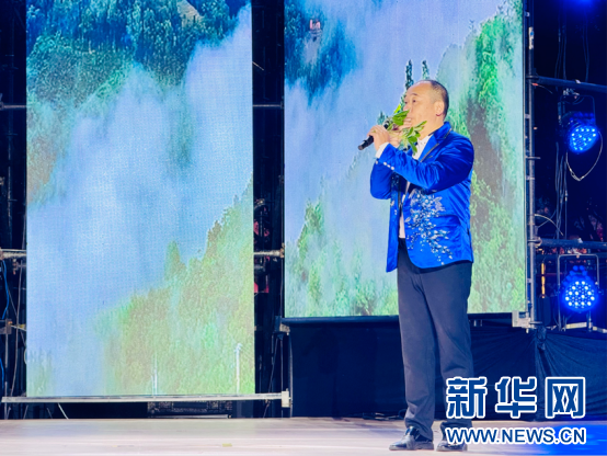 山歌与树叶吹奏表演《毛委员来到我家乡》。新华网 杨濛 摄