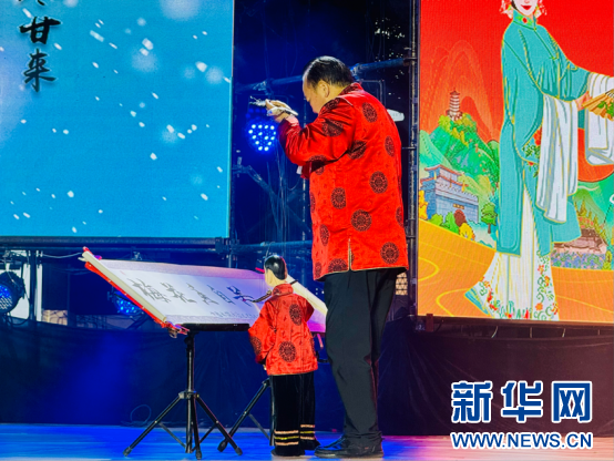 木偶书法表演《梅花香自苦寒来》。新华网 杨濛 摄