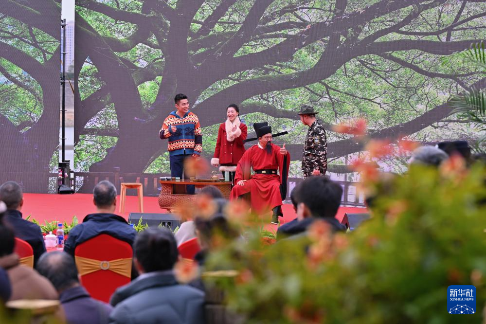 2026年1月1日,福州植物园干部职工在2026新年文艺汇演上表演情景剧《四库茶会》。新华社记者 姜克红 摄