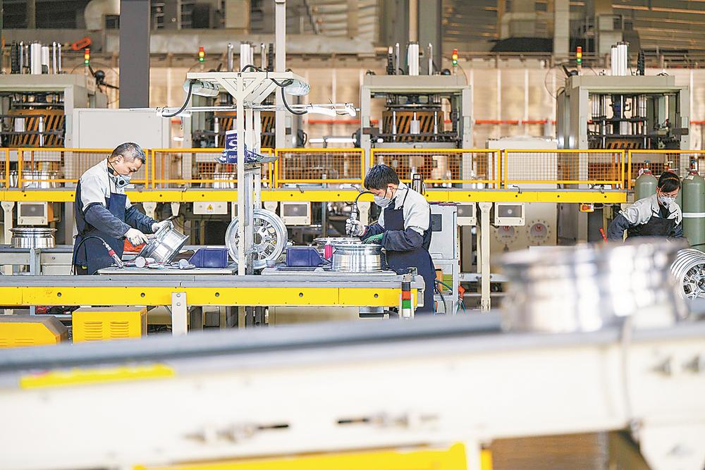 20日,在位于南安市的福建申利卡股份有限公司铸造车间,全自动化流水线高速运转,工人在对下线的轮毂进行检查。