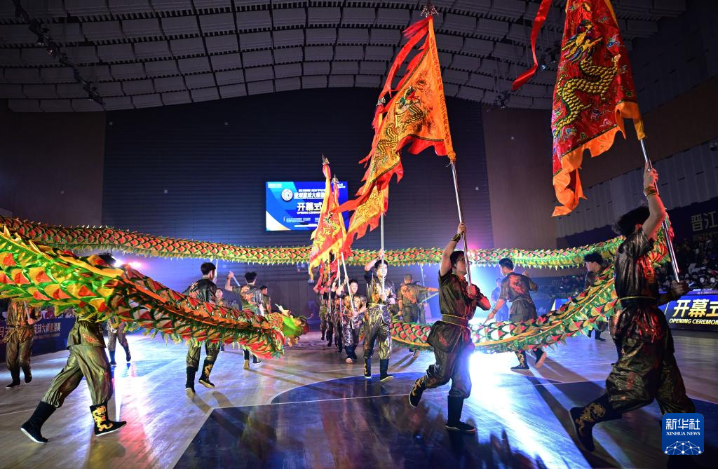 2月1日,演员在邀请赛开幕式上表演舞龙。新华社记者 魏培全 摄