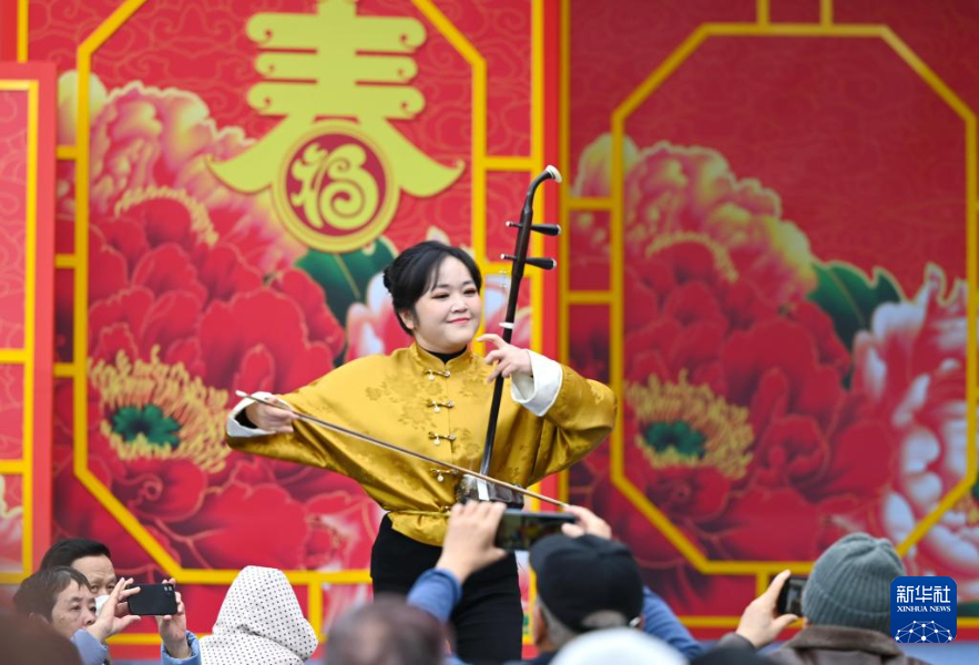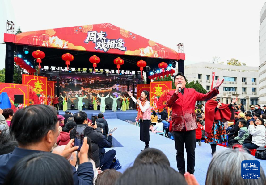 2月17日拍摄的福州西湖公园则徐广场举办的“周末戏相逢”春节特别节目现场。新华社记者 林善传 摄
