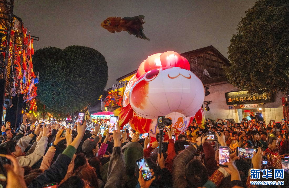 3 月 3 日,是正月十五元宵佳节,福州三坊七巷与上下杭历史文化街区举办新式非遗盛会,打造集观赏、体验、消费于一体的元宵文化盛宴,“千灯百戏+巨型福鱼”解锁闽式年俗生活。活动以“逛、学、赏、遇”为核心,推出沉浸式非遗体验,让市民游客在欣赏杂技、灯彩等精彩展演的同时,从旁观者变身参与者,深度感受闽都非遗的魅力。