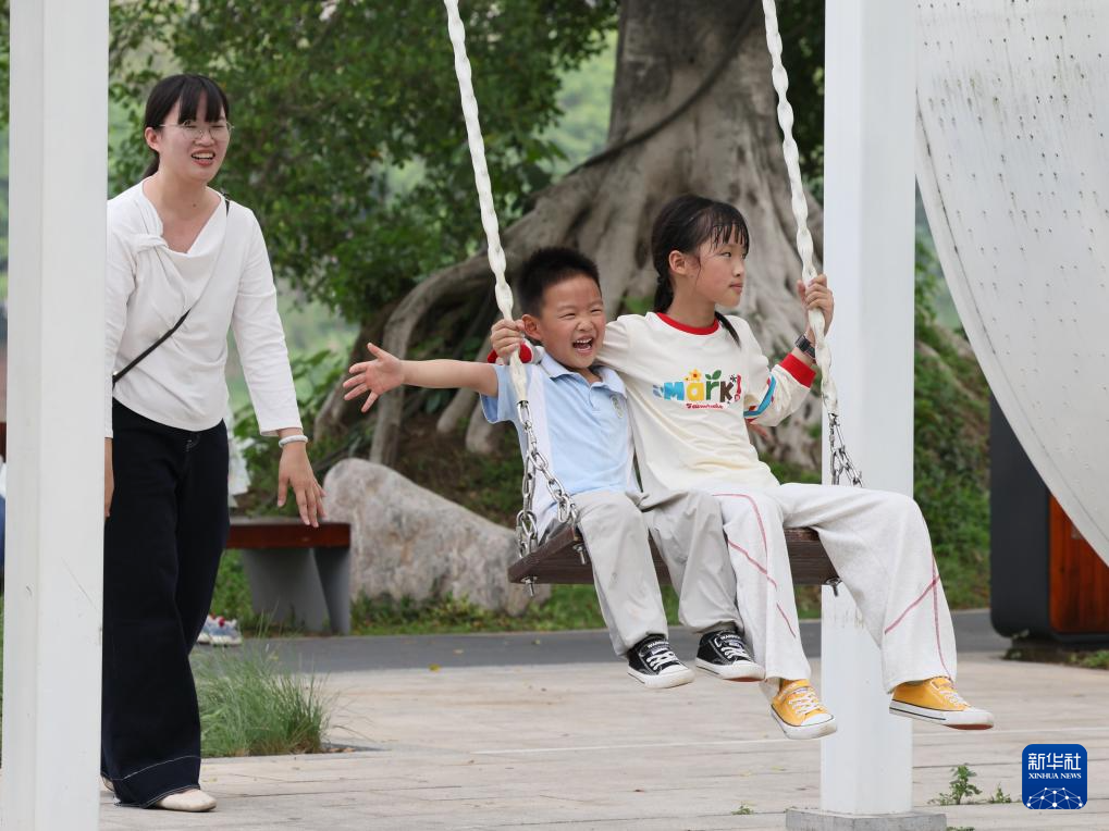 4月11日,小朋友在福建漳州龙江岁月景区游玩。新华社记者 邓华 摄
