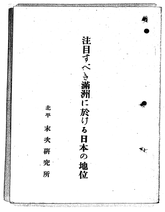 末次政太郎撰写的满洲对日本重要性的论著。新华社发