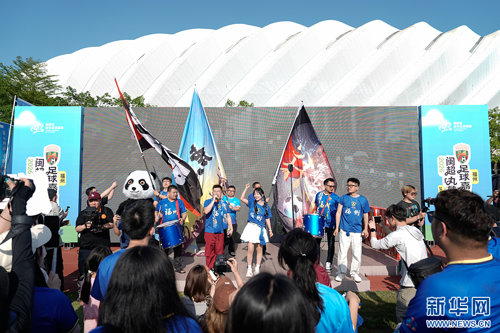 揭幕战开始前,福州球迷在嘉年华活动中为“闽超”助威。新华网 蒋巧玲 摄